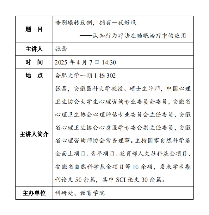 【善思讲坛】告别辗转反侧,拥有一夜好眠——认知行为疗法在睡眠治疗中的应用