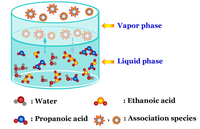 该研究针对目前缔合体系中组分数确证的关键科学问题,创新性地采用量子化学模拟计算水、乙酸和丙酸二元和三元体系中缔合组分的分布,确证了缔合组分数,提出了一种离散簇模型(discrete cluster model, DC model)关联与预测缔合体系气液相平衡数据,结果证明了3种单体、3种均相二聚体和三聚体、非均相3种二聚体和6种三聚体存在。该研究成果被选为IECR当期封面论文,同时被美国化学会(ACS)作为亮点文章专题报道。这是近年来高大明教授课题组关于化工分离过程中缔合组分气液两相分离在美国化学会学术期刊上发表的第6篇文章(其中,2篇IECR,4篇J. Chem. Eng. Data),这表明我校在化工分离中缔合体系热力学相行为研究中具有一定的学术积累。