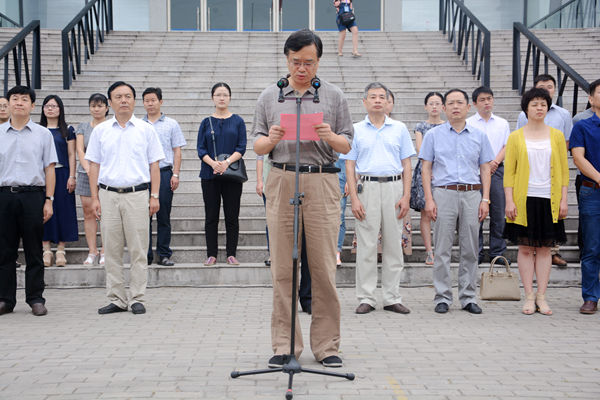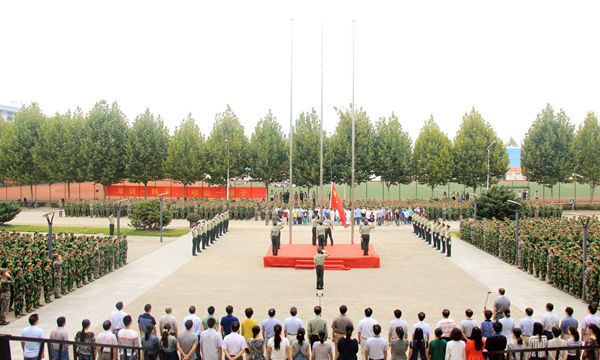 9月18日,为纪念“九一八事变”八十四周年,铭记历史、缅怀先烈、真爱和平、开创未来,我校在体育馆前隆重举行升旗仪式。党委副书记丁明出席仪式,仪式由学工部部长董承军主持。老师代表、学生代表及2015级部分新生参加。