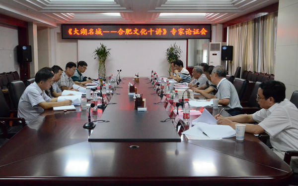 8月1日,《大湖名城——合肥文化十讲》专家论证会在我校召开,省教育工委常务副书记高开华,省社科院原副院长唐先田,中国人民大学教授、省徽学学会副会长朱万曙,安徽省历史文化研究中心主任翁飞,教育厅科研处副处长朱玉华,合肥市文广新局社文处处长夏东波,巢湖学院省级人文社科基地主任张安东一行校外专家莅临我校指导,我校校长张文兵、副校长陈秀在我校九楼东会议室接待了各位专家,参加专家论证会的还有我校省级人文社科基地主任徐毅、教授何峰、科研处副处长汪潘义。