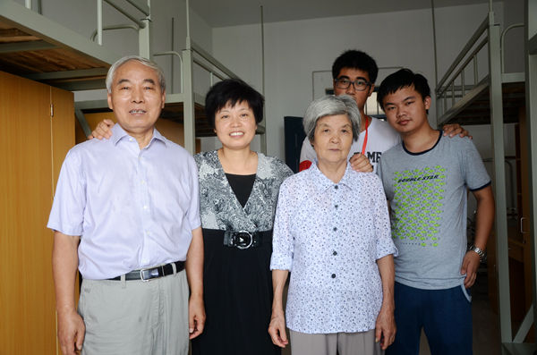 机械工程系的迎新志愿者徐梓丞早上5点就起床了,他早早地来到了报到地,期望为新生提供力所能及的帮助。上午7点,徐梓丞接待了张诺欣一家,并把他们送到了宿舍。张诺欣年迈的外公外婆也亲自来到了学校,一家三代人对志愿者的付出表示了衷心的感谢。