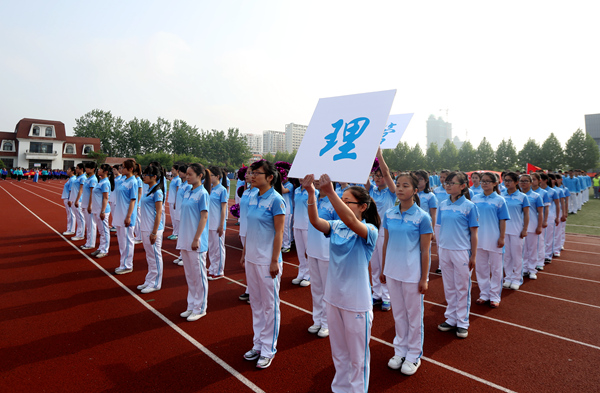 开幕式中,校方阵队、14个系部方阵队、留学生方阵队、研究生代表队和教职工方阵队依次走过主席台。方阵队伴着激扬的乐曲,昂首阔步,喊着振奋人心的口号,展现出我校师生勇往直前、积极向上的精神面貌。整齐的服装和独特的队形设计,展示出他们别样的风貌与精彩。