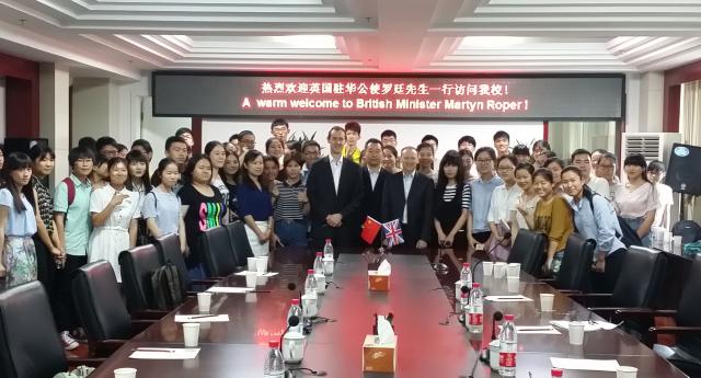 616日,英国驻华大使馆公使罗廷(Martyn Roper)、英国驻沪总领馆副总领事柯牧申(Tony Clemson)、英国驻沪总领馆区域事务处处长仰婷婷、英国驻沪总领馆区域事务官员许铭等一行人到访我校,校长张文兵、电子信息与电气工程系主任王庆龙、计算机科学与技术系主任王晓峰、国际交流合作处副处长张慧等于行政楼八楼贵宾室热情接待了来宾。