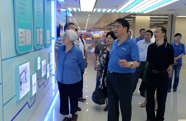 在安徽安利材料科技股份有限公司董事长、总经理姚和平陪同下,张懿院士一行参观了企业的生产实验室、产品展厅以及发展成果展。姚和平在交流会上介绍了安利股份的经营模式和发展历程,表示企业严格建立健全环保机构,不断提升源头和过程的清洁工艺,从设备投入和人才培养等方面不断加大对环保科技的研究,深入贯彻“生态环保、科学发展”的理念,努力达到社会效益最大化的发展目标。
