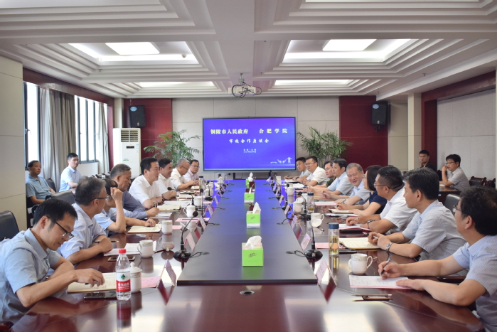 王其东对孔涛一行表示热烈欢迎。他说,近年来铜陵在推动传统产业转型升级,培育壮大战略性新兴产业上取得了显著成效,产业特色鲜明、优势明显,与合肥学院专业发展有着众多契合之处,双方未来合作空间广阔。合肥学院将在夯实现有合作的基础上,携手铜陵学院积极参与和推动铜陵经济社会高质量发展,认真做好合作大文章,着力解决发展新难题,努力打造校地合作、校校合作的新典范。