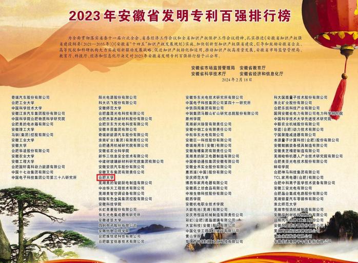 我校在2023年安徽省发明专利百强榜中再上新位次