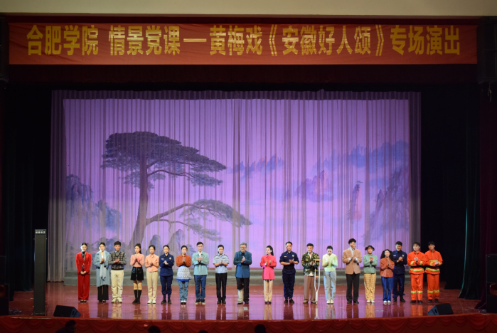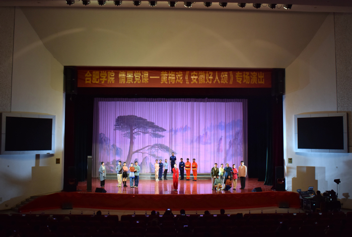 12月5日晚,“情景党课”进基层——黄梅戏《安徽好人颂》专场演出于我校致用礼堂举办。安徽省教育厅思政处、安徽省黄梅戏剧院,校党委宣传统战部、学生处、团委、马克思主义学院等单位主要负责人及学院师生到场观看。