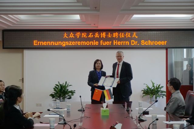 Die Hefei-Universität ernannte Herrn Dr. Klaus Schröer zum Sonderprofessor im Volkswagen-Institut