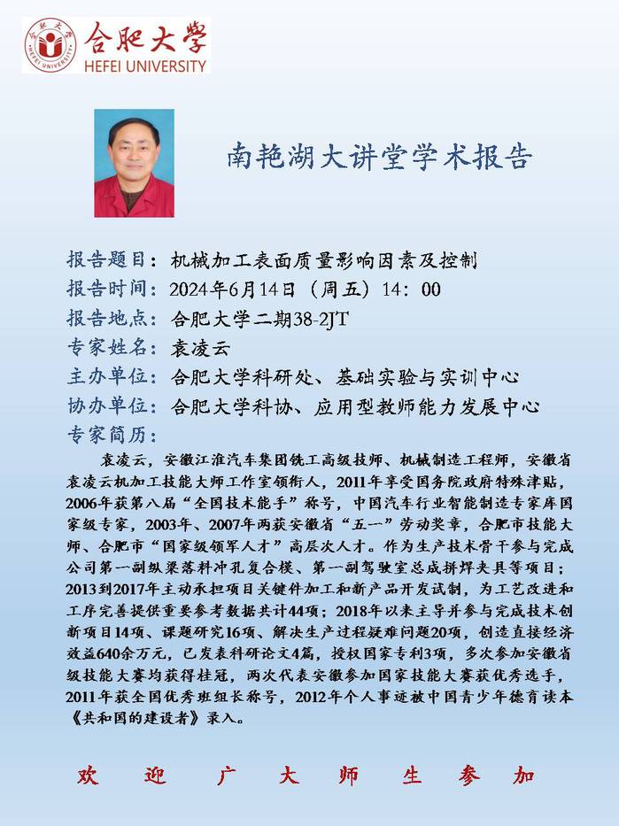 【南艳湖大讲堂】机械加工表面质量影响因素及控制